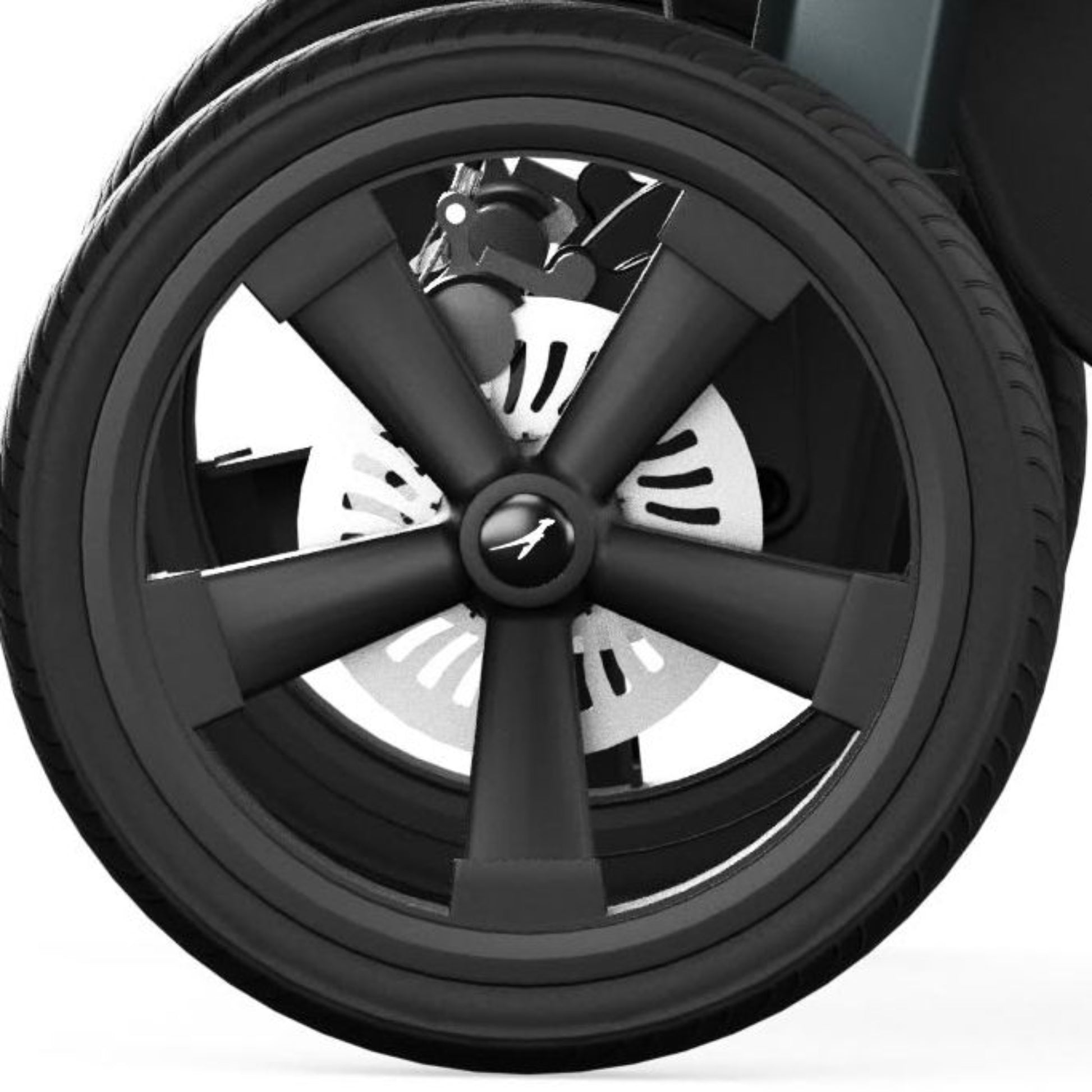 The stroller has an adjustable backrest for a reclined position suitable for a sleeping toddler, and allows the use of the rear disc brakes when running or jogging. One downside is that the rotating adjustment mechanism of the handlebar may not be suitable for tall parents.
